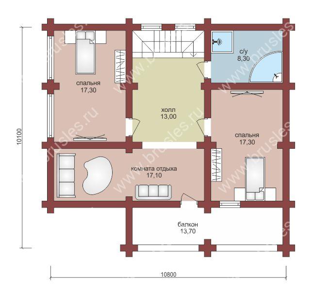 Проект "Даниил" двухэтажный коттедж из бруса с террасой и балконом